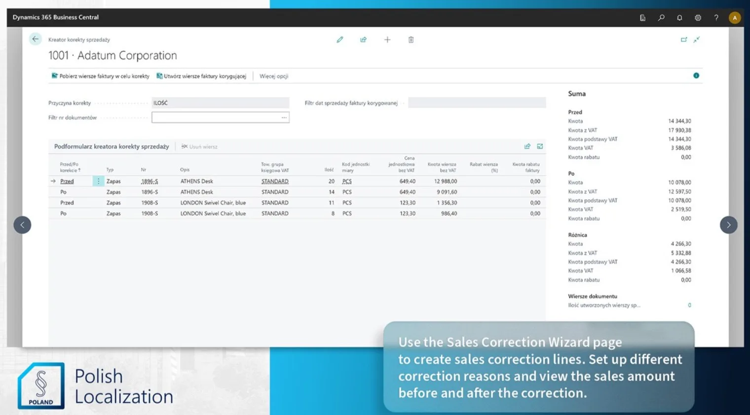 Polish Localization zapewnia pełne wsparcie dla KSeF, umożliwiając wystawianie, wysyłkę i odbiór e-faktur bezpośrednio w Microsoft Dynamics 365 Business Central.